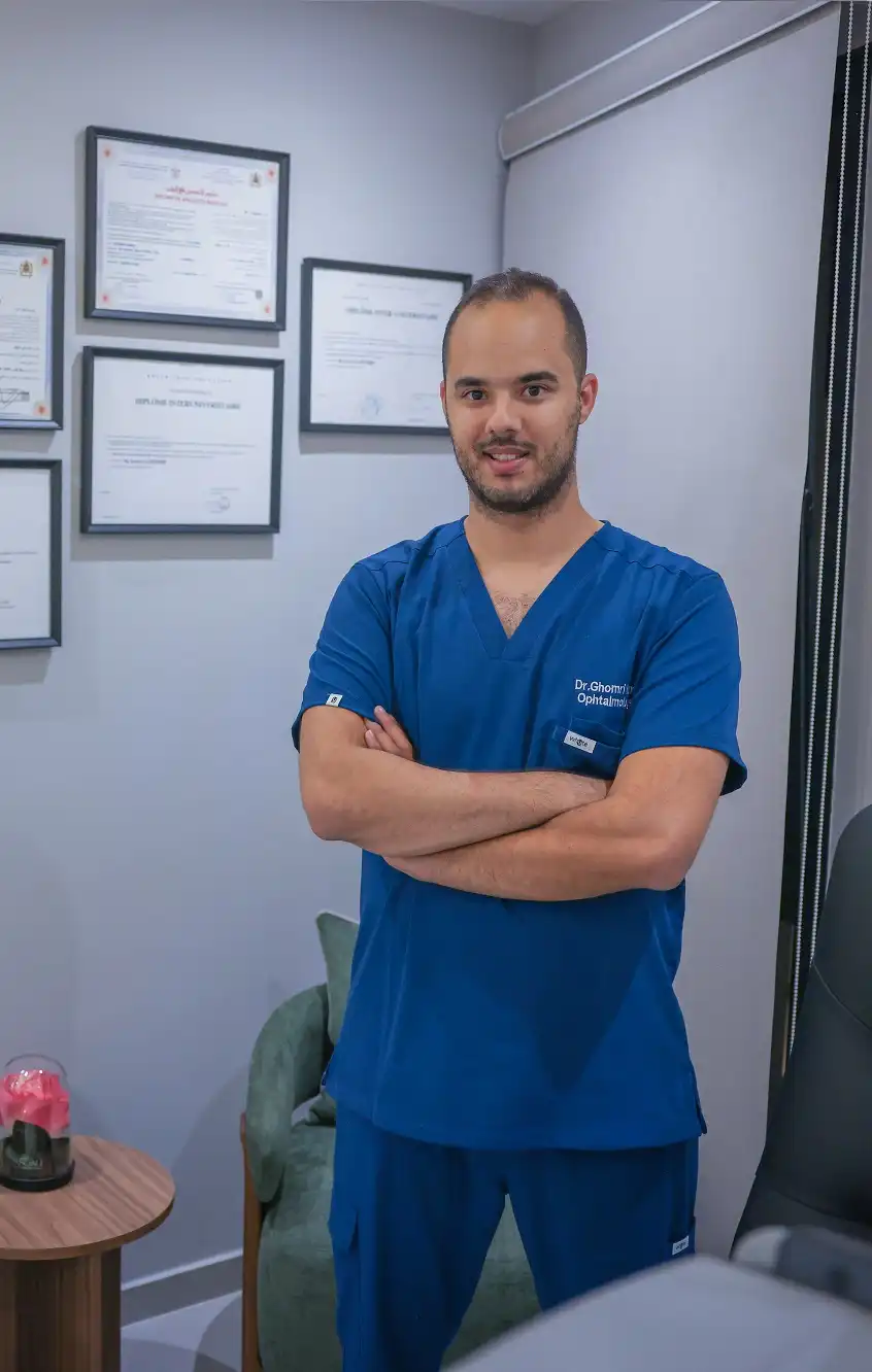 Le Dr. GHOMRI Hamza est ophtalmologue à Fès, spécialiste diplômé de la Faculté de Médecine de Fès, et des universités de Bordeaux, Paris, Tours et Versailles. Il exerce avec une approche moderne de la santé visuelle — des consultations de routine aux interventions chirurgicales les plus spécialisées.