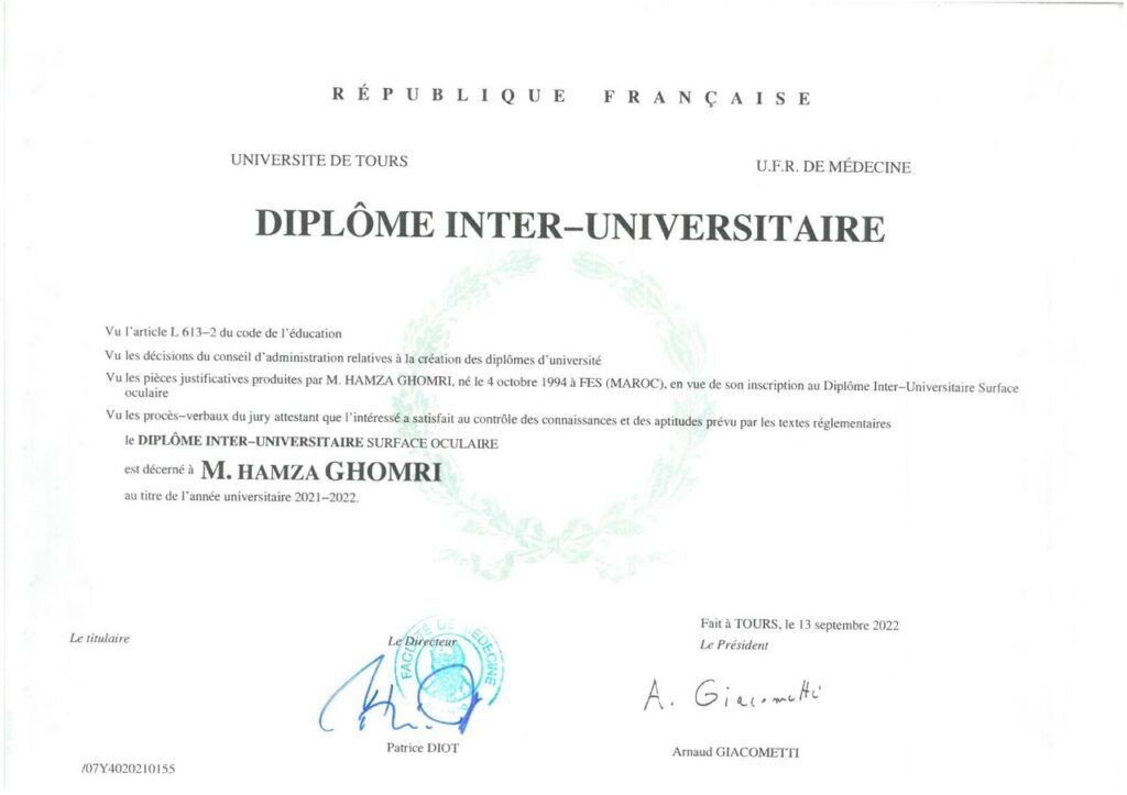 EXCELLENT Basée sur 123 avis Publié sur Amine AminuxTrustindex vérifie que la source originale de l'avis est Google. Une expérience excellente et une prise en charge d'une grande efficacité. Le diagnostic était précis.Publié sur Hichame KafhaliTrustindex vérifie que la source originale de l'avis est Google. خدمة في المستوى المطلوب، قد لا أكون مختصا لكن تحس أنك راض تماما، و تعامل راق تستشعر فيه حضور القيم إلى جانب الكفاءةPublié sur LEILA FELLAHTrustindex vérifie que la source originale de l'avis est Google. تجربة مميزة في عيادة الدكتور غمري لطب العيون بفاس 🙏 رعاية شخصية، تشخيص دقيق، واستقبال ودّي. لأفضل طبيب عيون في فاس 👁️✨Publié sur Ibis SacréTrustindex vérifie que la source originale de l'avis est Google. Très bonne expérience dans ce cabinet d’ophtalmologie à Fès ! Le Dr Ghomri est à l’écoute, prend le temps d’expliquer chaque détail et propose une prise en charge personnalisée. J’ai consulté pour un problème de vision et le diagnostic a été rapide et précis. L’accueil est chaleureux et l’organisation du cabinet est fluide, avec peu d’attente. Une excellente adresse pour toute personne cherchant un bon ophtalmologue à Fès.Publié sur SouadTrustindex vérifie que la source originale de l'avis est Google. Excellent ophtalmologue à Fès 👁️. J’ai consulté pour une cataracte et j’ai été impressionné par le professionnalisme du Dr Ghomri. L’examen était très complet, avec des explications claires et rassurantes. L’intervention s’est parfaitement déroulée et ma vision s’est nettement améliorée dès les premiers jours. Le cabinet est moderne, bien équipé et très propre. Je recommande vivement ce spécialiste à toute personne recherchant un ophtalmologue à Fès compétent pour la chirurgie de la cataracte.Publié sur mohammed ElboudaliTrustindex vérifie que la source originale de l'avis est Google. I want to sincerely thank you for the exceptional care and professionalism you showed me during my eye consultation. From the moment I arrived, your warm and welcoming reception made me feel comfortable and confident. Your attention to detail, patience, and expertise in eye care truly impressed me, and I deeply appreciate the time and effort you put into ensuring everything went smoothly. I am very grateful for your support and highly recommend you to anyone seeking excellent eye carePublié sur FATIMA ZAHRA LAMZADRHITrustindex vérifie que la source originale de l'avis est Google. Une adresse à retenir ! Accueil chaleureux et consultation très professionnelle. Je recommande vivement.Publié sur Loubna ElhawatTrustindex vérifie que la source originale de l'avis est Google. طبيب عيون ممتاز في فاس 👁️ الدكتور يتميز بالكفاءة والاحترافية، شرح لي حالتي بشكل واضح وقدم لي العلاج المناسب. العيادة مجهزة بأحدث التقنيات ونظيفة جداً. تجربتي مع عملية إزالة الجلالة كانت ناجحة جداً والحمد لله. أنصح بشدة بهذا الطبيب لكل من يبحث عن أفضل طبيب عيون في فاس.Publié sur Stephen TerravecchiaTrustindex vérifie que la source originale de l'avis est Google. I was visiting Fes and had an eye issue that needed an opthamologist. Dr. Ghomri provided excellent care, in English and was available that day. Highly recommend.Publié sur Salah SghirTrustindex vérifie que la source originale de l'avis est Google. Un cabinet comode et un Dr à l'écoute,son assistante est très sérieuse chaque question posée, on trouverait une réponse sur le champs avec clarté, positivité, et détails scientifiquesCertifié par: TrustindexLe badge vérifié de Trustindex est le symbole universel de confiance. Seules les meilleures entreprises peuvent obtenir le badge vérifié, avec une note supérieure à 4.5, basée sur les avis des clients au cours des derniers 12 mois. En savoir plus